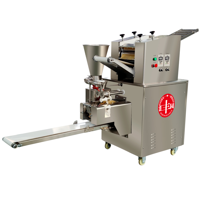 制作好面坯和拌好的餡料放入機(jī)器的餡斗和面斗,通過(guò)手柄可以調(diào)節(jié)皮的厚薄,餡泵調(diào)節(jié)餡料多少,將面和餡傳送至成型模即可出餃子。優(yōu)勢(shì):1.采用壓輥壓制成面皮0.4MM-3MM厚度可調(diào)、加水量大(高達(dá)48%),面筋沒(méi)有任何破壞,面皮富有彈性、口感好、有嚼勁,與手工水餃媲美。2.仿手工餃子機(jī)制作面皮經(jīng)過(guò)制成筒狀后,在注餡,廢皮可以回收利用,不存在浪費(fèi)。3.仿手工餃子機(jī)效率高,節(jié)約勞力80%以上,只需一人即可操作。4.本機(jī)壓面、制皮、注餡、成型于一體,自動(dòng)化程度高,結(jié)構(gòu)緊湊,設(shè)備的維護(hù)、清洗方面簡(jiǎn)單。