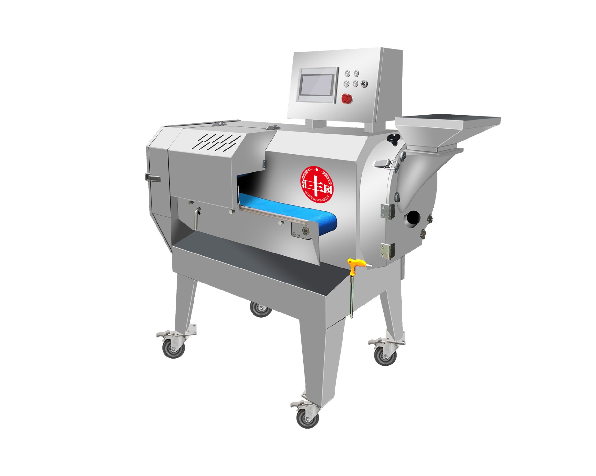 本設備幾乎可切任何瓜果蔬菜,如:切片、絲、丁,末、段等;具備雙調頻功能,一頭是切葉菜類,如長蔥,蒜苗,韭菜,芹菜,白菜, 青菜等等,一頭是切球根莖類,如蘿卜,土豆,紅薯,芋頭,筍,洋蔥,茄子,蘋果,生姜等等眾多瓜果類蔬菜。葉菜部份:切割規(guī)格: 1~20mm可調,也可切部份根莖類;根徑部份刀盤范圍:片:2-10MM,絲:2-6MM,丁:10MM、12MM、15MM、20MM選一;葉 菜類的輸送帶速度和轉刀速度采用變頻器調節(jié),均可獨立控制。一機多用,功能強大,產量高,操作簡單,清洗方便。 | |