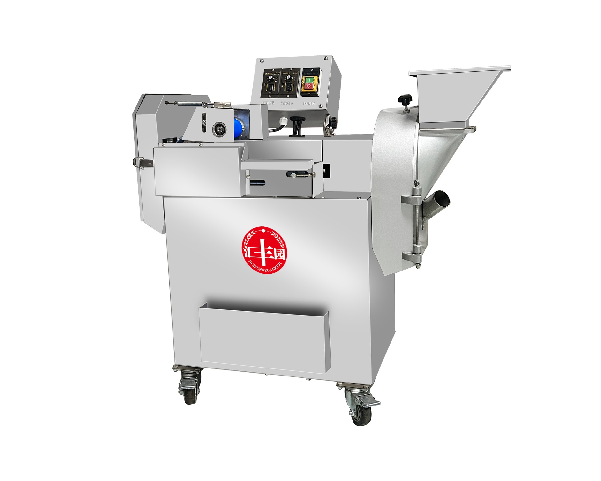 多年的經(jīng)驗反復改進設計制造,“離心式切片構造”可完成硬質蔬菜的切片,自動輸送到刀架下,可加工成片、絲、塊、丁、菱形、曲線等 多種形狀。也是目前眾多產品無法取代的。因豎刀模擬手工切菜原理,加工表面平整光滑,成型規(guī)則,被切蔬菜組織完好,保持新鮮。該機 廣泛適用于硬、軟各種根、莖、葉類蔬菜比如土豆、芹菜、韭菜、蒜臺、豆角等蔬菜以及竹筍、年糕、海帶的加工,也是餐飲業(yè)必不可少的 理想設備之一,隨機工具箱配有菱形丁刀、方形丁刀、波紋型刀和直豎刀,根據(jù)物料切碎需求更換不同刀片。離心切片厚度1.5-10毫米可調, 傳送帶切片切絲厚度1-25毫米可調,菱形刀片切出厚度:16毫米,切丁刀片切丁寬度:19毫米。 | |