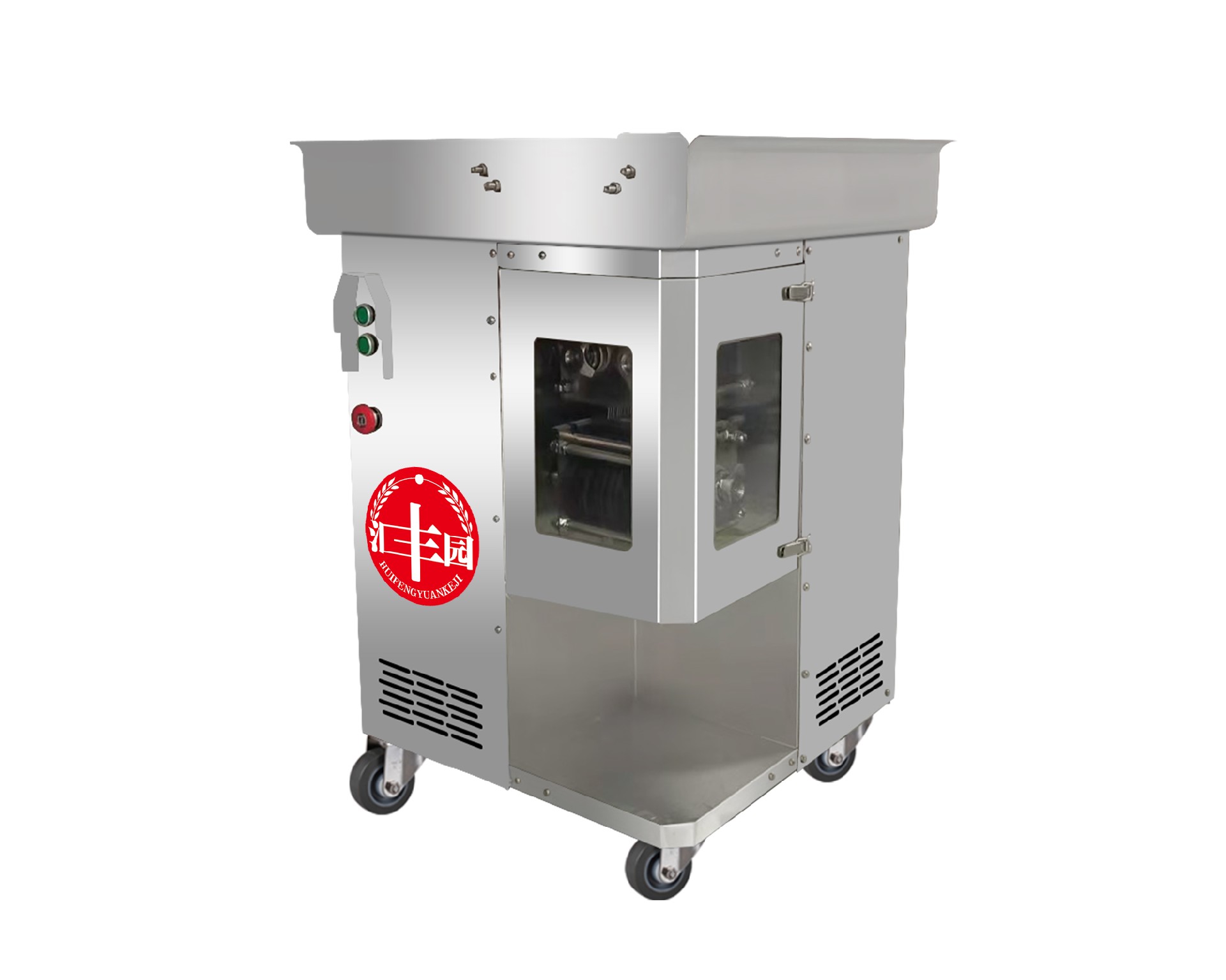 采用優(yōu)質(zhì)不銹鋼制作,機(jī)身緊湊結(jié)構(gòu),設(shè)計(jì)美觀,方便清洗,機(jī)器刀片為不銹鋼材料,特殊淬火工藝鋒利耐用,兩個(gè)獨(dú)立刀組,可自由 拆卸,切面光滑新鮮使其肉制品薄厚均,高品質(zhì)始終如一,設(shè)備帶有萬向剎車腳輪方便移動,實(shí)現(xiàn)對無骨肉類及類似榨菜富有彈性的食 物切成絲. 切片 切丁,適用于大中小規(guī)模的餐飲或肉類加工企業(yè); | |